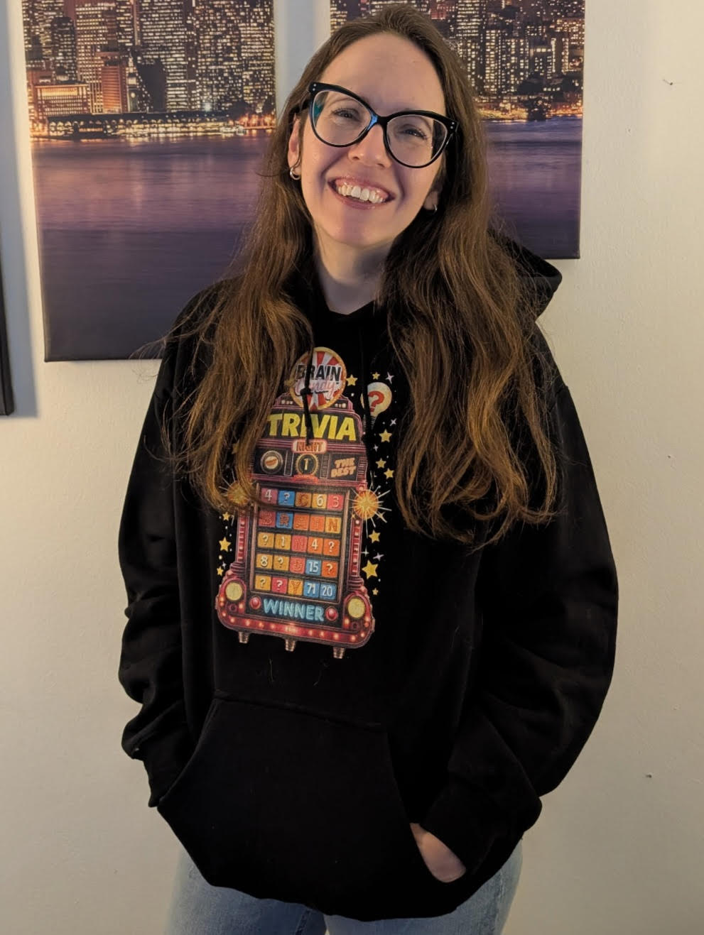Brain Candy Podcast LIVE online interactive trivia winner. Wins the ultimate rare prize. The Brain Candy Podcast Winner’s Hoodie. Help us celebrate her victory.